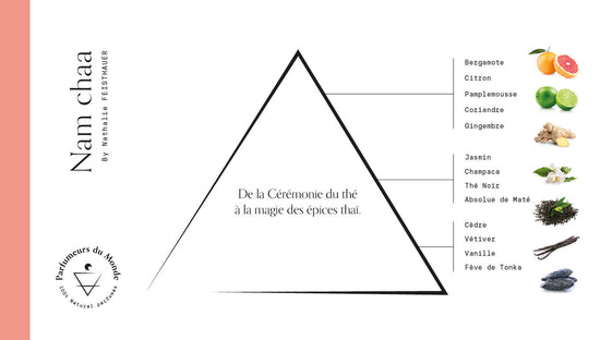 Notes de coeur : Jasmin, Champaca, Thé Noir, Absolue de Maté
